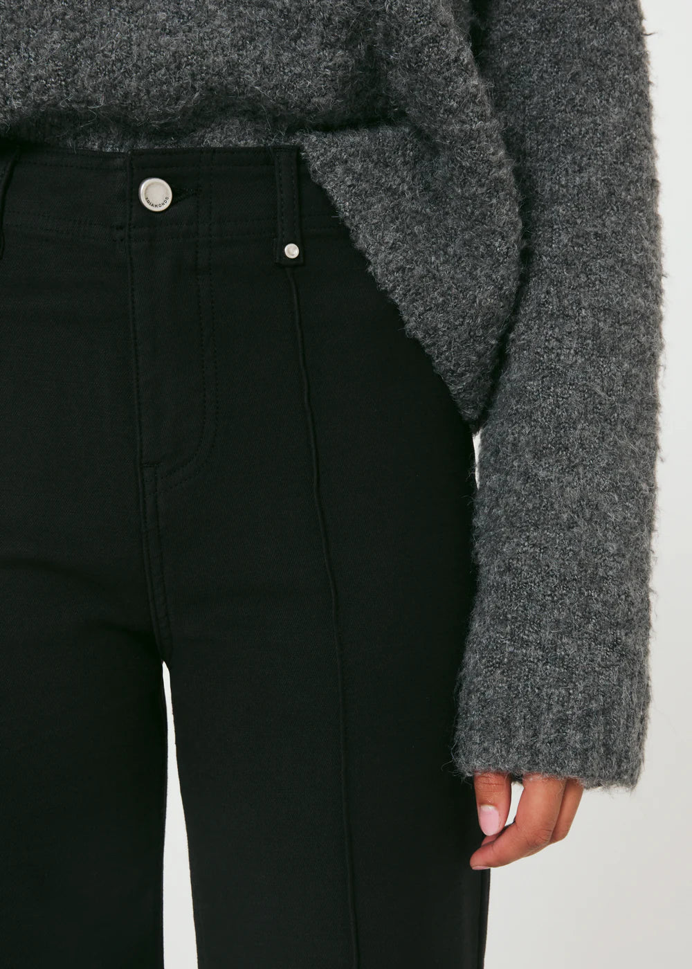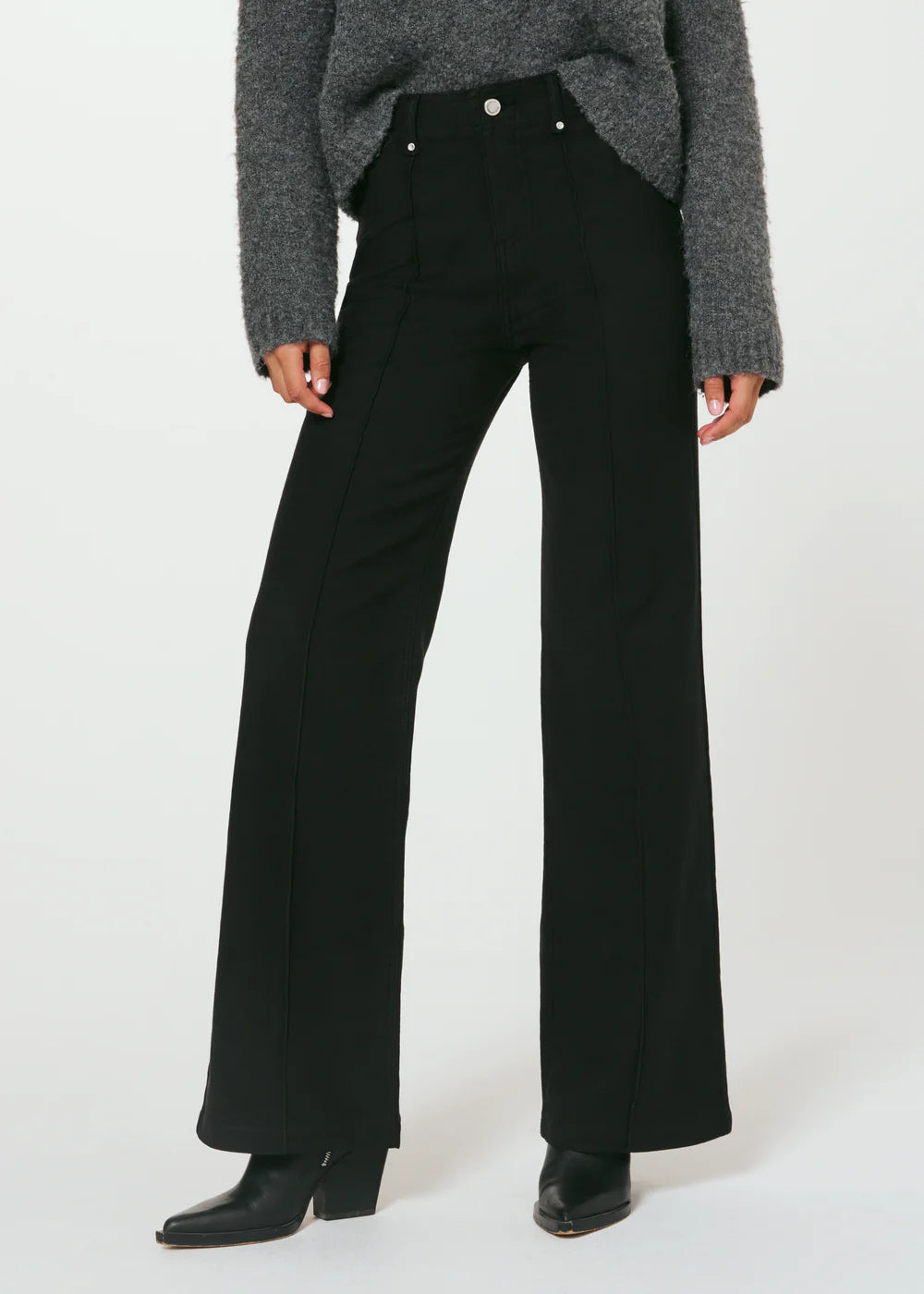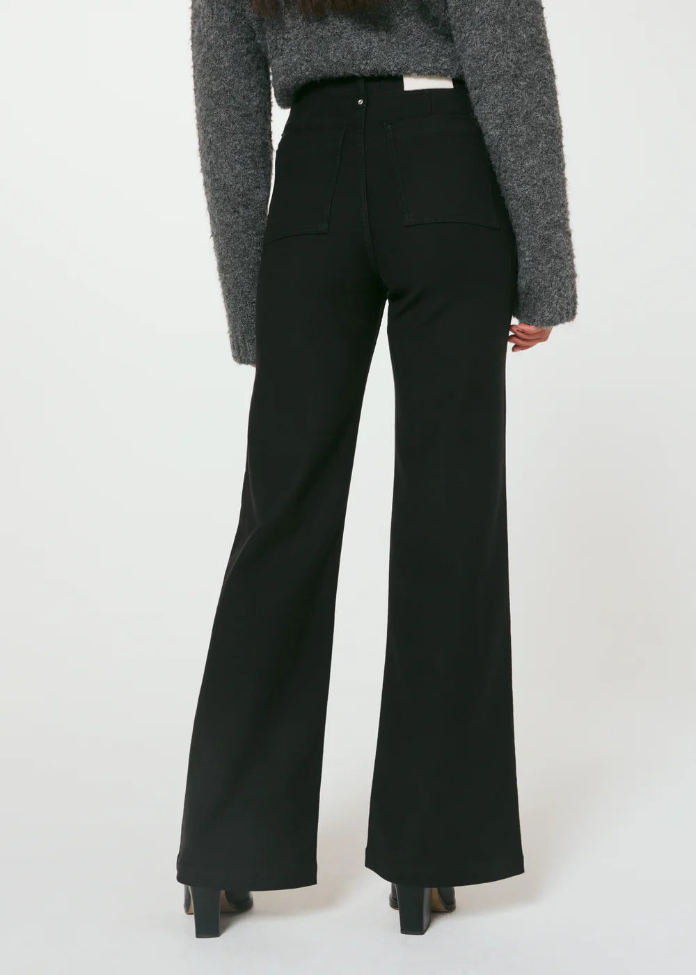 A front seam and wide leg silhouette combo; designed to elongate your legs and enhance your natural shape. To top it all off, the metal logo trim adds the most subtle touch.