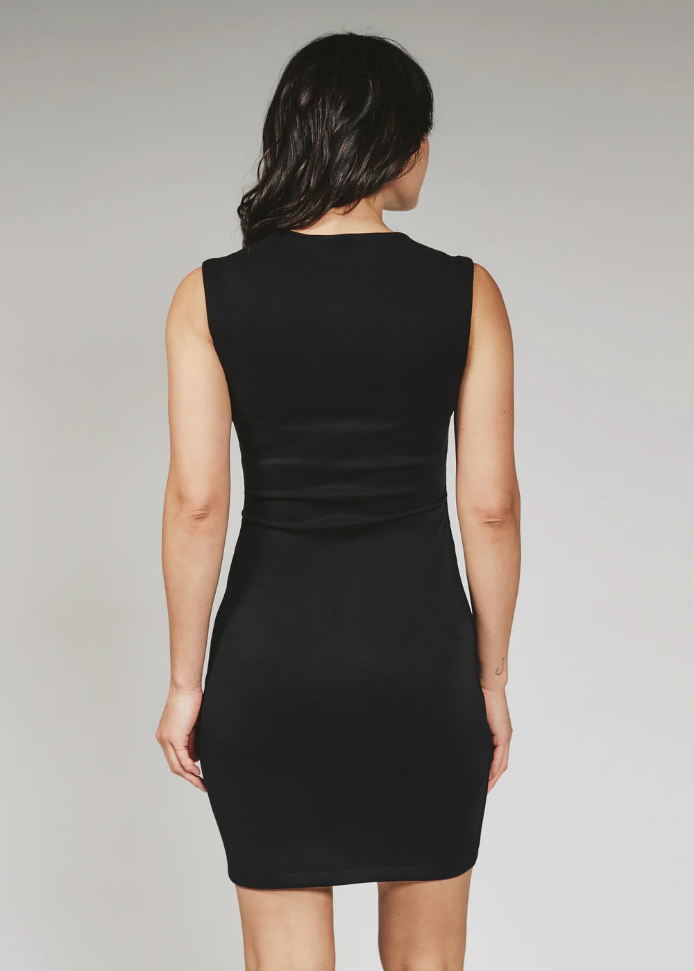 A sleek sleeveless mini dress with ruching detail giving you a cinched waist. This sophisticated piece is a versatile addition to your closet — perfect for casual outings or dressy occasions.