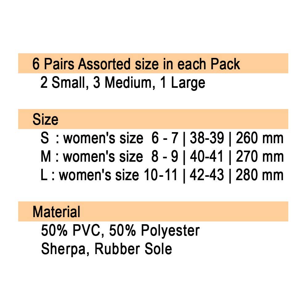 S: women size 6-7 (260 mm) 38-39 • M: women size 8-9 (270mm) 40-41 • L: women size 10-11 (280mm) 42-43