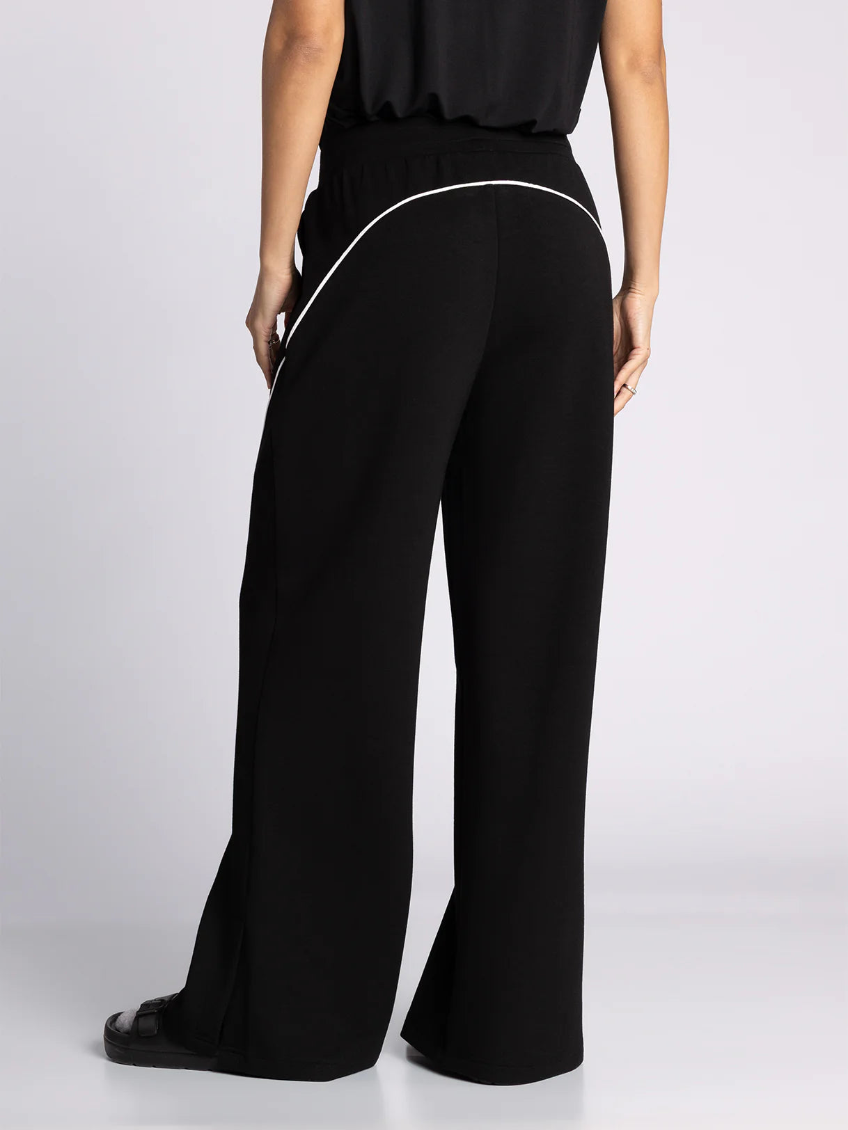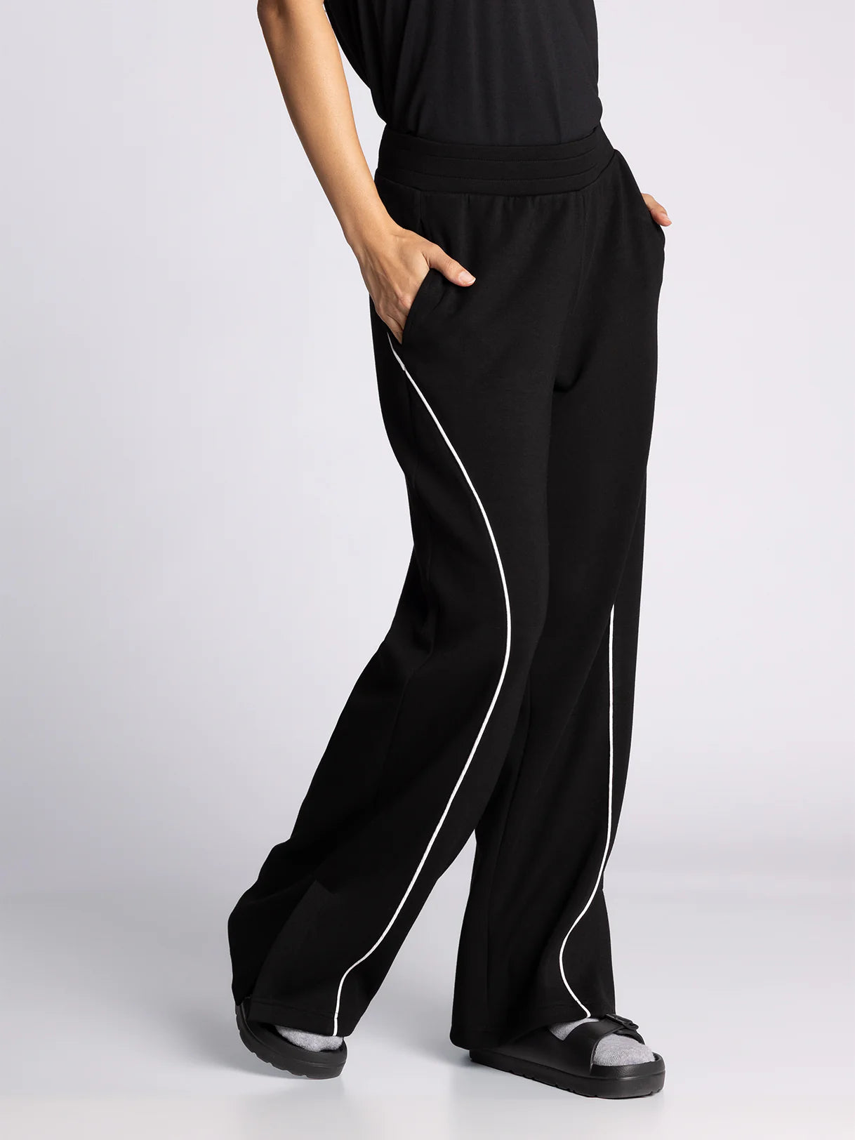 Designed to be a wear-anywhere essential in your loungewear or workout wardrobe rotation, these timeless pants are featured in a wide-leg silhouette with elastic waistband, side pockets, and contrast piping for a sporty touch. Make it a set with the Britney Top.