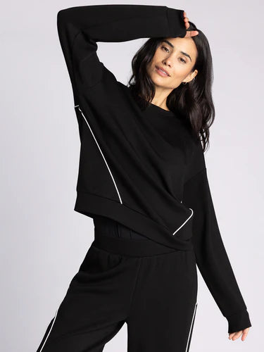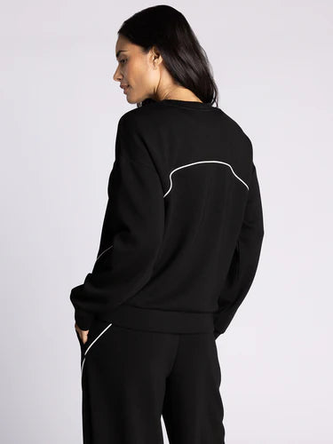 Made for easy layering, this buttery soft top is the perfect throw-on for casual comfort. Featured with contrast piping details for a sporty touch and drop shoulder for a relaxed fit. Make it a set with the Britney Pant.